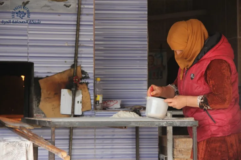 “أم سارة”، وهي أرملة من ريف دير الزور، اضطرت بعد فقدان زوجها إلى العمل في صناعة الخبز وبيعه للجيران والمحيط القريب، مستخدمة فرناً طينياً بنتهُ بنفسها خلف المنزل. بدأت بكميات بسيطة لتأمين احتياجات أطفالها، لكن مع الوقت أصبح الجيران يعتمدون عليها، خاصة في ظل تعطّل الأفران ونقص الخبز.
